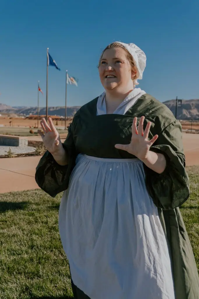 Ashlie Chaston is a recent graduate from Utah Tech University, achieving a Bachelor of Arts in Theatre with an Acting Emphasis, as well as a Creative Writing Minor. Chaston is a colonial reenactor at Liberty Village, offering historical representation of Mercy Otis Warren, as well as other notable women from history. She also aids in writing performance pieces for other reenactors and helps at our monthly Young Patriots Kid’s Club. Chaston has participated in over 24 theatre productions over the years. Some of her favorite roles have been Puck from A Midsummer Night’s Dream, Beatrix in This Girl Laughs, This Girl Cries, This Girl Does Nothing, and Miss Shingle in A Gentleman’s Guide to Love and Murder. For more information, visit her website at ashliechaston.com.